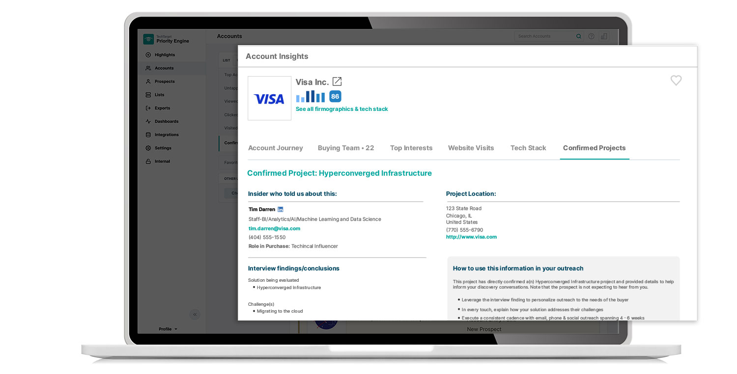 Help your sellers craft more personalized pitches. Enable them with purchase intent data and real insights. Armed with this, they can break into new accounts, land more meetings and close more business.