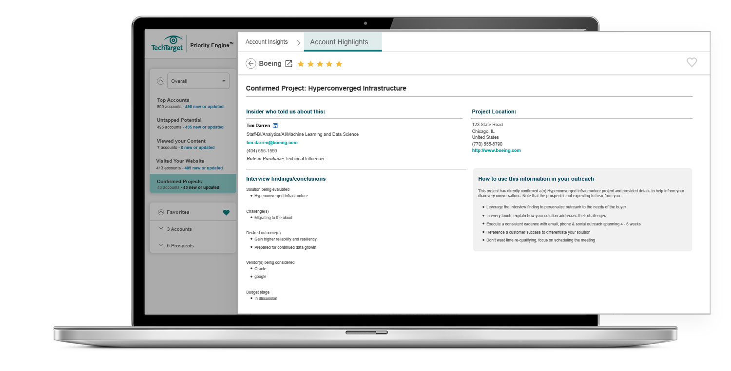 Successful marketing starts with good data. If your database is filled with the wrong contacts, or the wrong information about them, you’re never going to be as productive as you could be. As needed, TechTarget can add thousands of opted-in contacts to your database. Priority Engine™ then enhances the data on a weekly basis with thousands of relevant prospect activities, so you can focus your best efforts on the critical opportunities in your market.